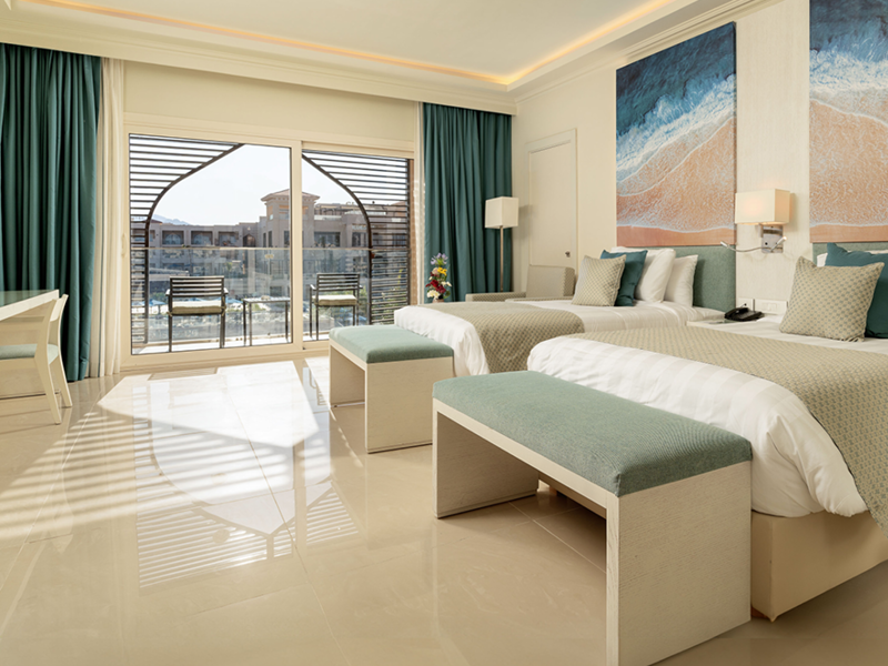 All rooms have a balcony or terrace, king or twin beds, bath with shower, WC, air conditioning, robes & slippers, hairdryer, iron, safe, tea/coffee facilities, satellite TV, telephone* mini-bar* and free WiFi